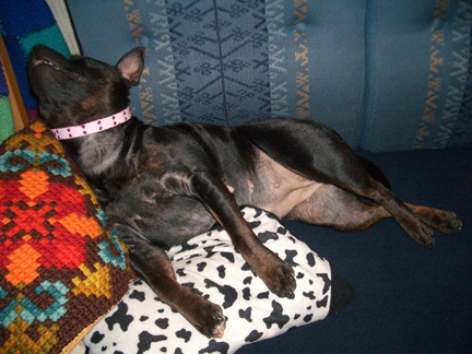 Both this black, and the more common black, occur in Australian Shepherds and in the Groenendael variety of Belgian Sheepdogs as shown by Ralph on the right. | ![]() |