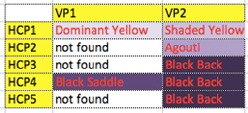 Note that the promoter study of 2021 would call some, most or all of these dogs "Shaded Yellow (SY)". They report they have VP2 instead of VP1. |